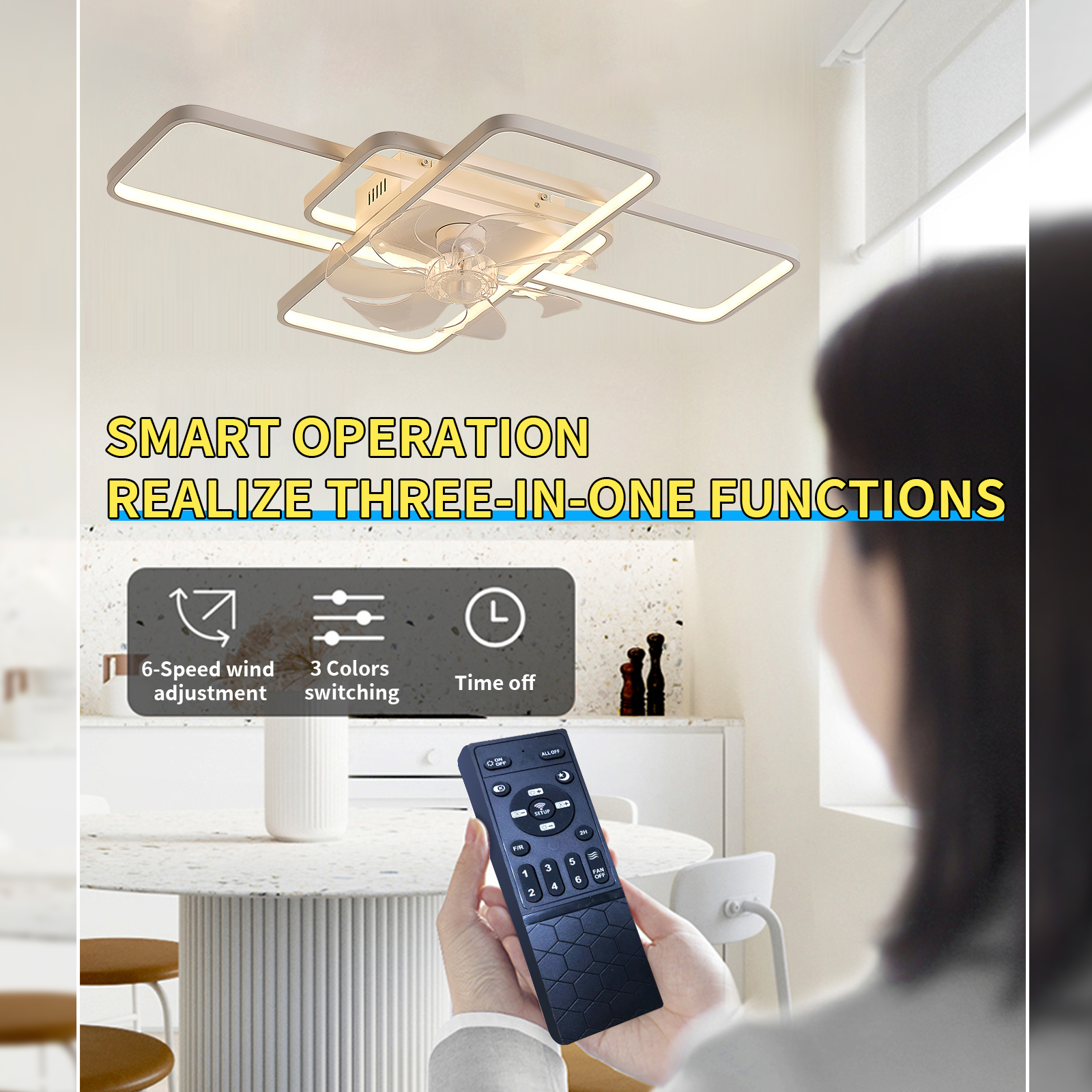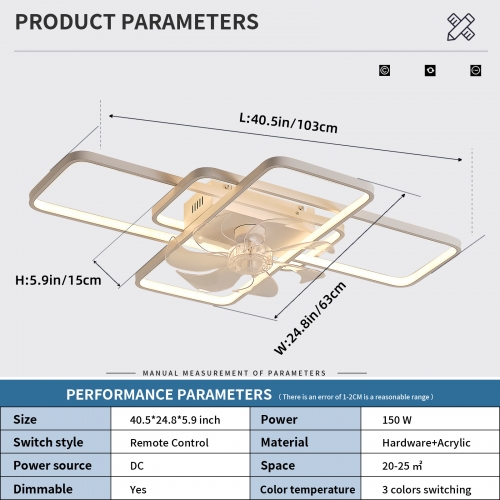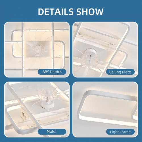 - Dimmable: The ceiling fan lights can be switched between white light 6000K, neutral light 4500K, and warm light 3000K through the remote control.